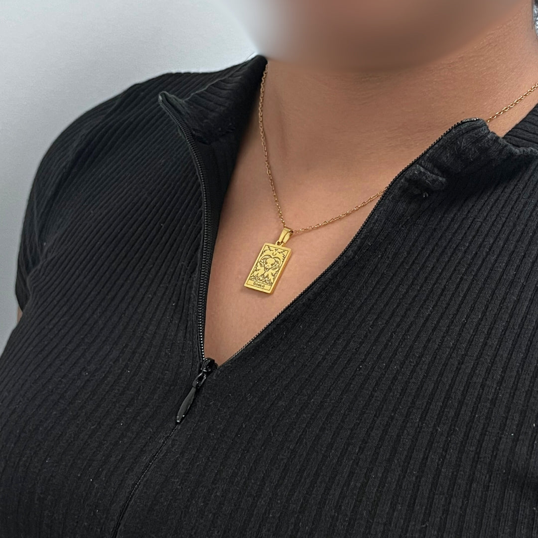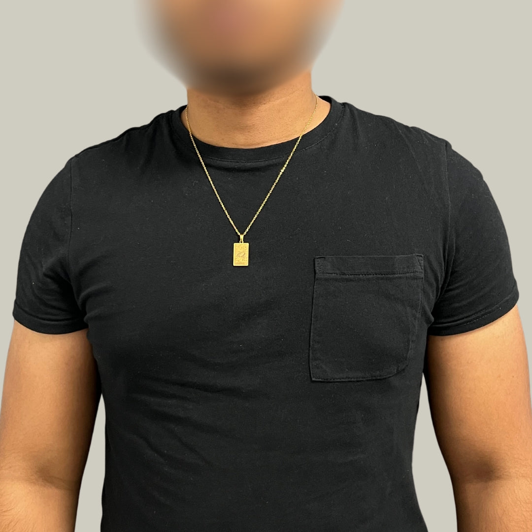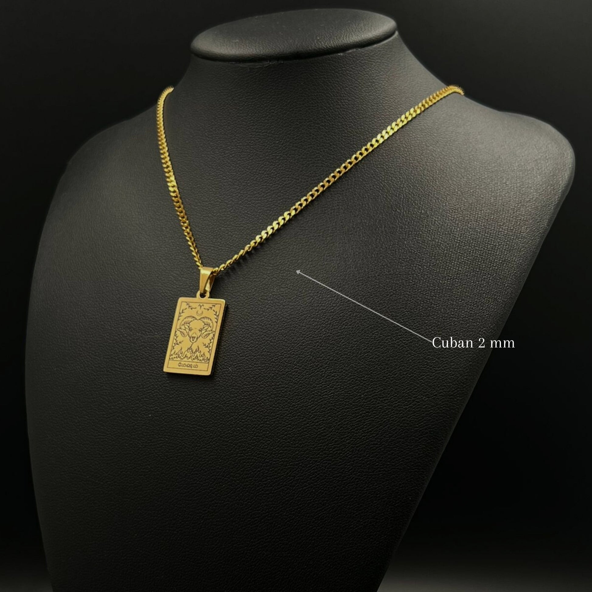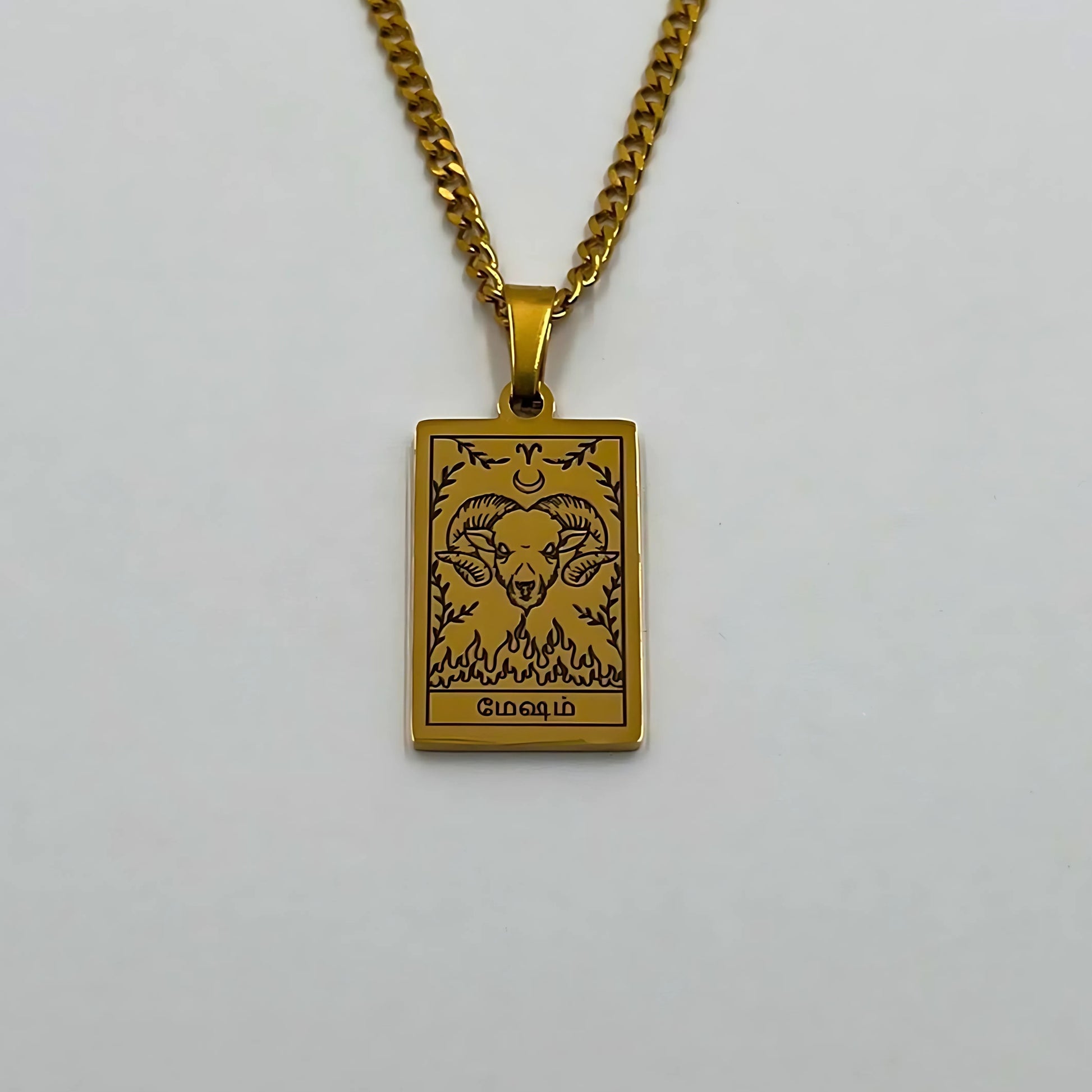 Le collier et le pendentif sont en acier inoxydable, plaqués or 18 carats et ils représentent les signes zodiaques en Tamil.